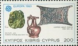 200-millieme stamp depicts copper ore ingot (Enkomi 1400-1200BC).