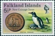 2-pence stamp depicts a 1/2-pence coin; 5 1/2-pence stamp depicts a 1-pence coin; 8-pence stamp depicts a 2-pence coin; 10-pence stamp depicts a 5-pence coin; 16-pence stamp depicts a 10-pence coin.