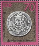 70-pfennig postage stamp depicts 8th century Arabian coin.