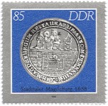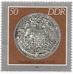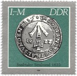 85-pfennig stamp depicts a coin of Magdeburg, 1638;