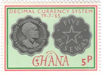 5-pesewa stamp depicts a 1965 5-pesewa coin;