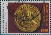 1000-drachma postage stamp depicts a Byzantine coin depicting Jesus Christ.