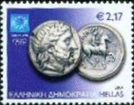 2.17-euro stamp depicts a silver 4-drachma coin of Philip II of Macedonia.