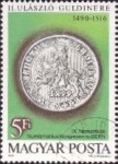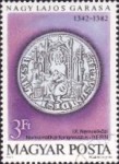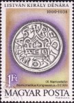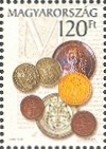 1-forint stamp depicts a denarius of Stephen I, 1000-1038; 2-forint stamp depicts a copper coin of Bela III, 1172-1196; 3-forint stamp depicts a golden groat of King Louis the Great, 1342-1382; 4-forint stamp depicts a golden forint of Matthias I, 1458-1490; 5-forint stamp depicts a silver gulden of Wladislaw II, 1490-1516.