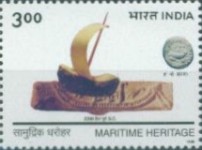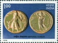 1-rupee postage stamp depicts a Kushan gold coin of the 1st century.