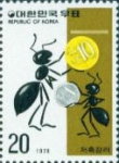 20-won postage stamp depicts 1-won and 10-won coins.