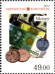 A listing of postage stamps of Kyrgystan depicting coins.