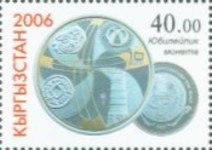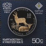 A listing of postage stamps of Kyrgyzstan depicting coins.