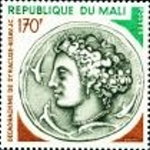 130-franc stamp depicts a Carthaginian tristater of 500 B.C.; 170-franc stamp depicts a Decadrachma of Syracuse of 413 B.C.; 190-franc stamp depicts a Acanthe tetradrachma of 400 B.C.; 260-franc stamp depicts a Didrachma of Eritrea of 480-445 B.C.