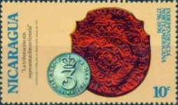 A listing of postage stamps of Nicaragua depicting coins.
