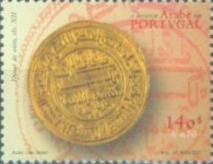 140-escudo postage stamp depicts a gold dinar from the 12th century.