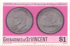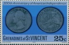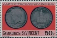 25-cent stamp depicts US 1976 25-cent coin; 50-cent stamp depicts US 1976 50-cent coin; $1 stamp depicts US 1976 $1 coin.