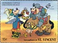 Granada '92 philatelic exhibition; Walt Disney characters as Spanish explorers in the New World.