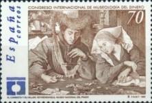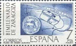 3.50-peseta stamp depicts a coin of emperor Gamba.