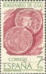 7-peseta postage stamp depicts Roman 1st Legion coin.