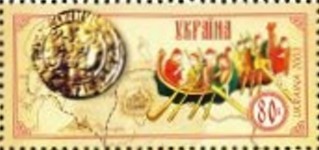 80-kopiyka stamp depicts coin of Danish King Svend Estridsen;