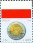 65-cent stamp depicts Poland 5-zloty coin. 65-cent stamp depicts Latvia 1-lat coin. 65-cent stamp depicts Portugal 1-euro coin. 65-cent stamp depicts Armenia 500-dram coin. 65-cent stamp depicts Sweden 1-krona coin. 65-cent stamp depicts Cyprus 1-euro coin. 65-cent stamp depicts Slovakia 1-koruna coin. 65-cent stamp depicts Qatar 50-dirham coin.