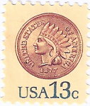 13-cent postage stamp depicts an 1877 Indian Head one-cent coin.