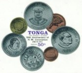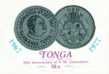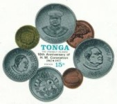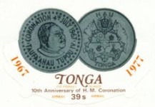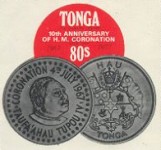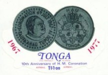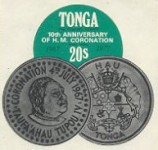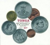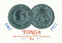10-, 15-, 25-, 50-, 75-seniti stamps depict seven different coins. 11-, 17-, 18-, 39-seniti, 1-pa'anga airmail stamps depict coronation coin. 20-, 40-, 80-seniti airmail official stamps depict coronation coin.