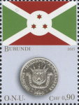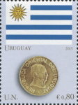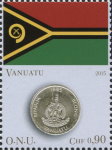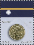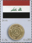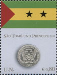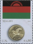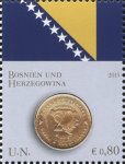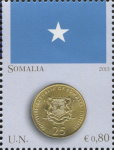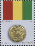 75-cent stamp depicts Lithuania 2015 1-euro coin.