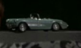 - A 1956/57 Arctic Blue/silver Corvette model appears on a shelf.